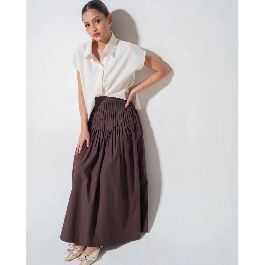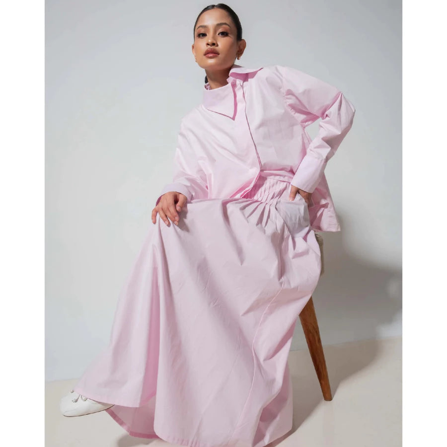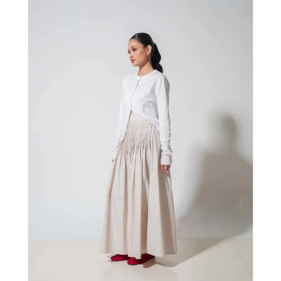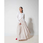 Haze Cotton Skirt is where structure meets softness— a statement in controlled volume and effortless movement. Crafted from premium 100% crisp cotton, it holds its form while maintaining an airy, fluid silhouette that flatters in motion.