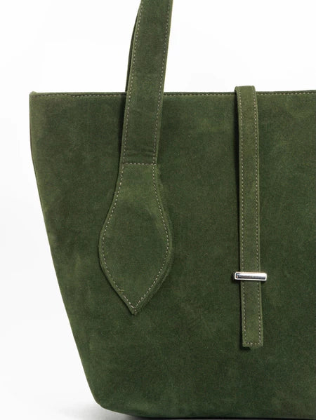- Bagian luar suede yang lembut dalam warna hijau zaitun tua dan krem untuk warna alami dan bersahaja