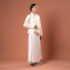 A tailored fitted shirt designed with an adjustable waist for a flattering silhouette. The back is beautifully finished with delicate floral embroidery, adding an elegant statement touch.