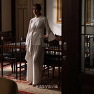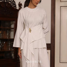 Laise Linen Blouse is crafted from breathable linen with a soft, natural drape. Designed with an asymmetric layered silhouette, it features a gentle wrap detail secured by a subtle metallic accent at the waist, creating a refined focal point without feeling excessive. The relaxed sleeves and fluid lines allow the blouse to move gracefully with the body, offering comfort and understated elegance. Laise is a versatile piece that brings quiet structure and femininity to everyday dressing.