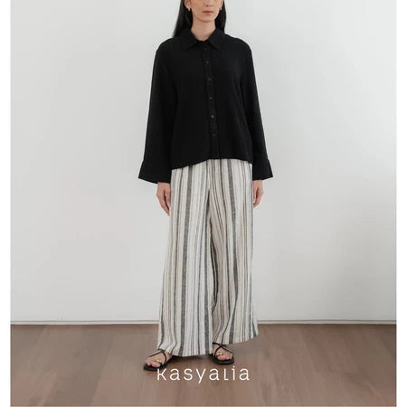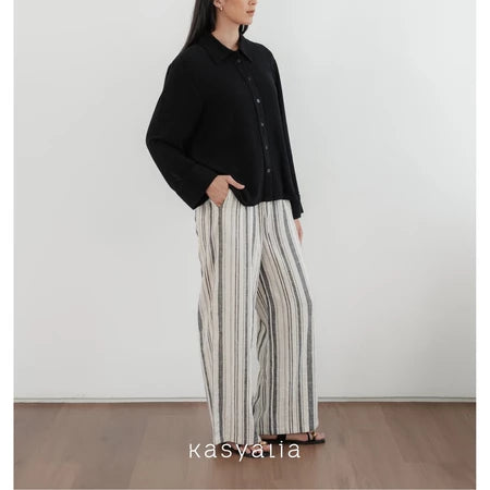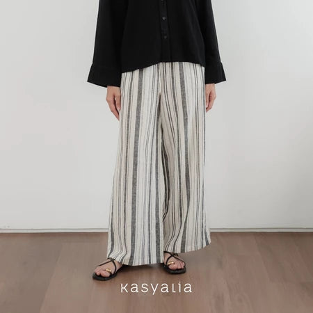 Lea Striped Pants deliver a relaxed sophistication through its flowing wide-leg cut and timeless vertical stripes. Made from breathable linen, it offers both ease and elegance in movement. With a high-rise fit and subtle texture, Lea is a versatile piece that adds rhythm and refinement to your everyday wardrobe.