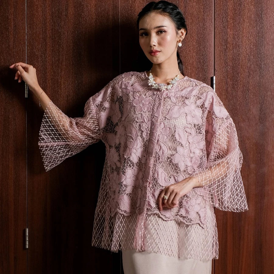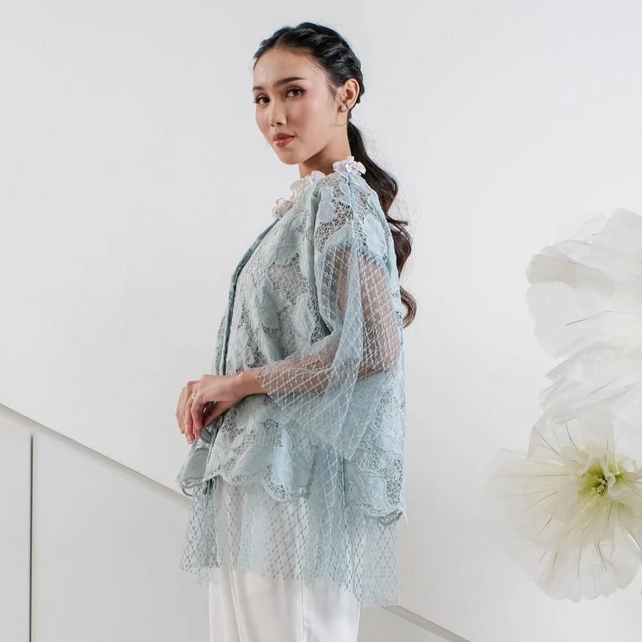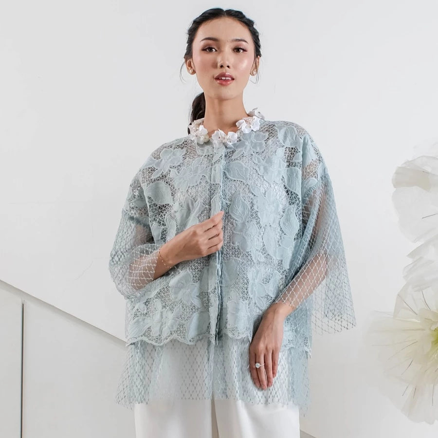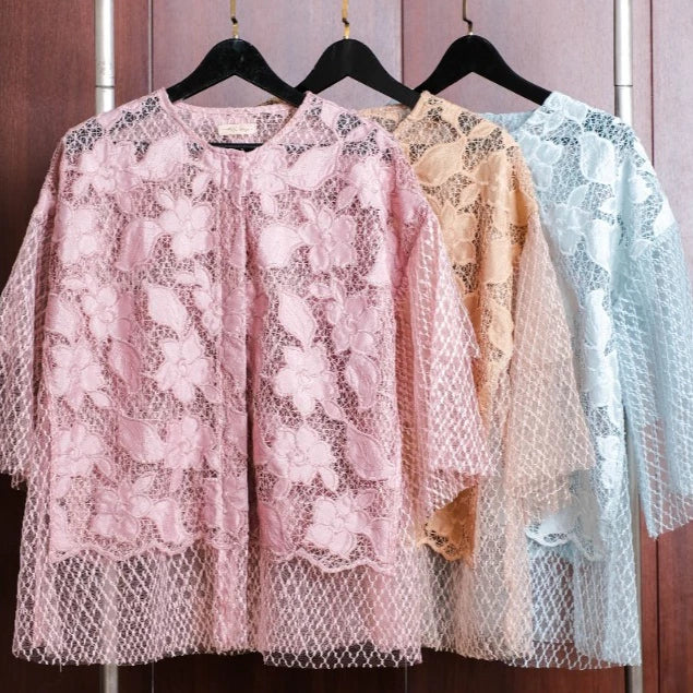 Tampil anggun dan memukau dengan Lizzie Outer ini. Didesain menggunakan kain brokat premium bertekstur bunga 3D yang menghadirkan kesan mewah dan feminin. Lapisan luar berbahan lace jaring halus memberikan efek flowy yang cantik saat dipakai, sementara potongan loose-fit membuatnya nyaman dan tidak membentuk tubuh.