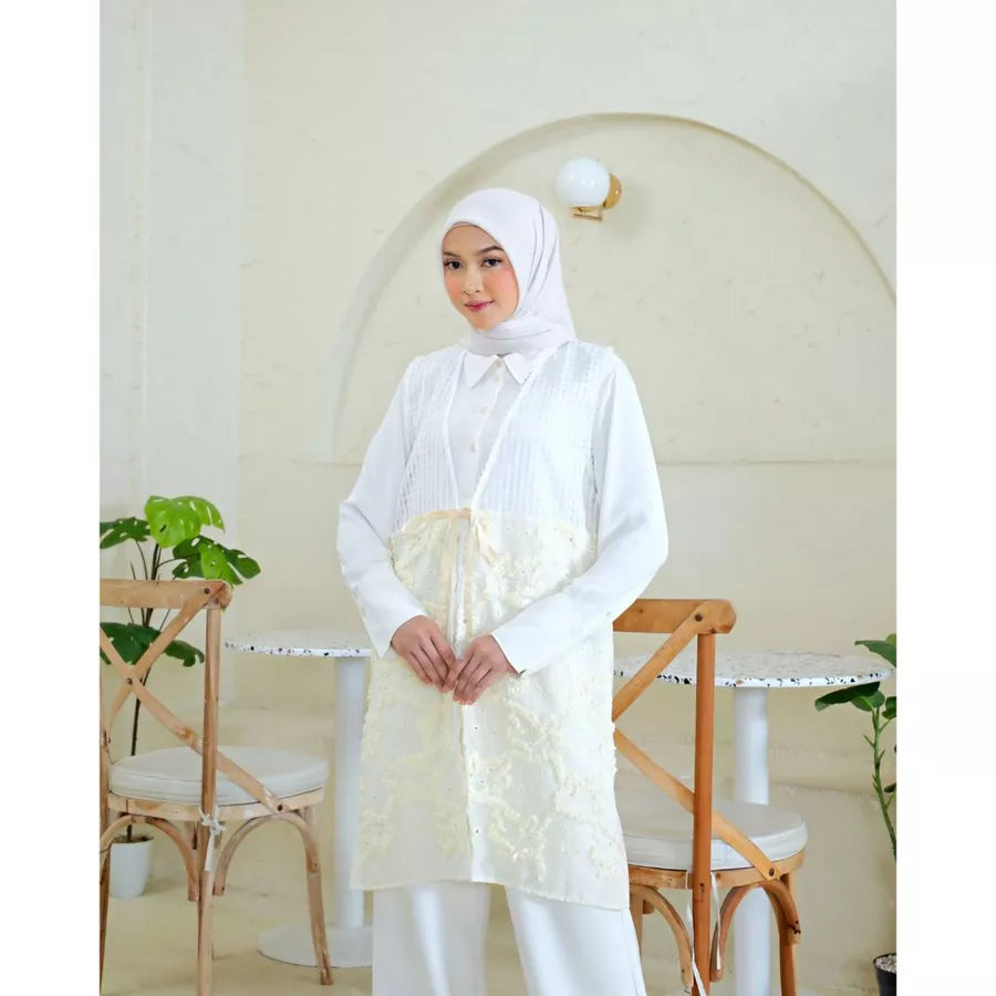 Vest tunik ini terbuat dari bahan katun dengan bordir yang elegan, memberikan tampilan yang cantik dan menarik.