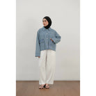 This fabric offers a natural feel that is breathable, soft against the skin, and comfortable for all-day wear. The material has a structured yet lightweight character, allowing the garment to maintain its silhouette while still feeling flexible and non-restrictive when worn