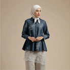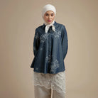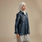 Detail: Flower Jacquard Denim, Kerah kemeja, Hidden button, Lengan manset
