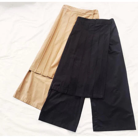 Cullote dengan aplikasi apron yang menyerupai rok, timeless and edgy