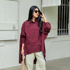 Kemeja dengan detail ruffle di bagian belakang yang bikin tampilan makin manis dan effortless. Bisa dipakai sebagai outer atau atasan biasa. Nyaman dipakai harian, hangout, atau ngantor!