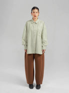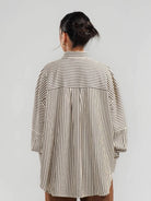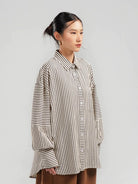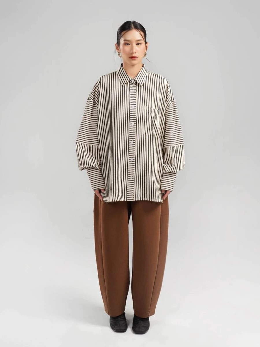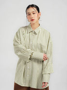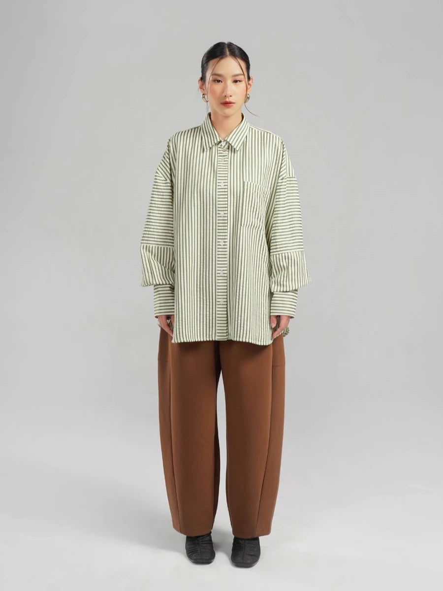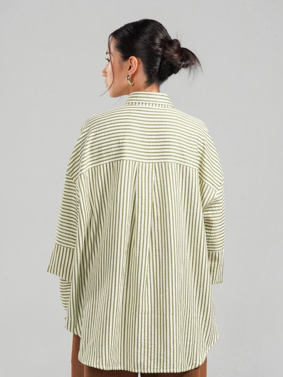 Kemeja lengan panjang bermotif garis dengan bahan seersucker dengan nuansa casual dan stylish. Bahannya ringan, nyaman, dan jatuh, cocok untuk aktivitas sehari-hari. Potongan oversize dengan detail pada bagian lengan tangan (cuff) yang bisa di styling sesuai gayamu dan simple karena gaperlu setrika langsung siap pakai.