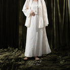 Crafted from cotton embroidery, this skirt features delicately stitched motifs that add depth and refined texture. Designed with a clean, balanced silhouette, it offers ease of movement while maintaining a timeless sense of elegance. A thoughtful blend of classic charm and modern femininity, finished with artisanal detail.