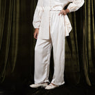 Crafted From Premium Heavy Silk. These Tailored Trousers Offer A Refined Yet Effortless Silhouette. Thoughtfully Designed With An Elasticated Waistband At The Front And Back For Balanced Comfort And Structure, They Reflect A Harmonious Blend Of Classic Tailoring And Modern Femininity.