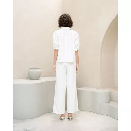 Add a touch of elegance and charm to your wardrobe with this white shirt featuring exquisite blue embroidered floral details at the top. The delicate floral design adds a burst of color and artistry, while the balloon short sleeves bring a playful, feminine flair. Made from soft, breathable fabric, this shirt ensures comfort throughout the day, whether you're at work, out with friends, or enjoying a casual outing.