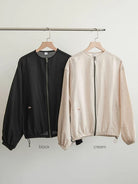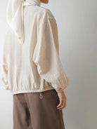 Bagian depan dilengkapi resleting YKK Premium, sementara bagian bawahnya ada tali serut dengan stopper yang bisa disesuaikan sesuai style. Memberikan tampilan rapi, elegan, tapi tetap fleksibel untuk melengkapi berbagai outfit.