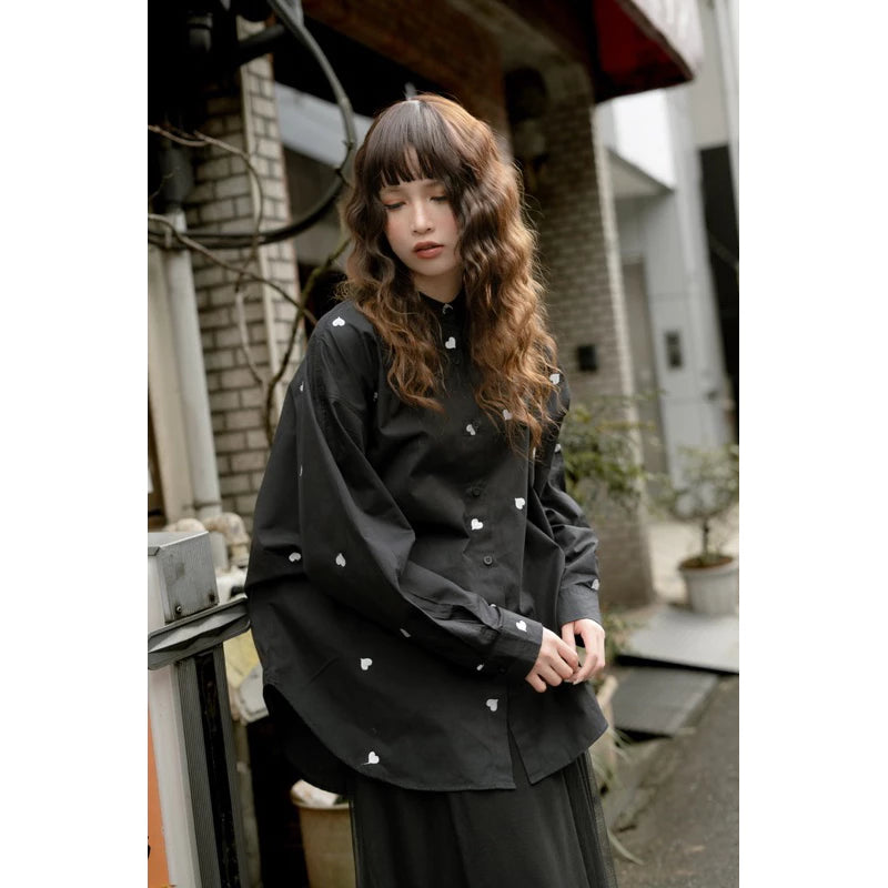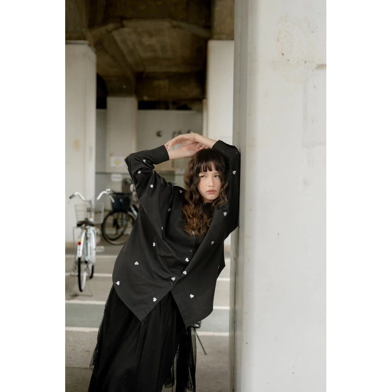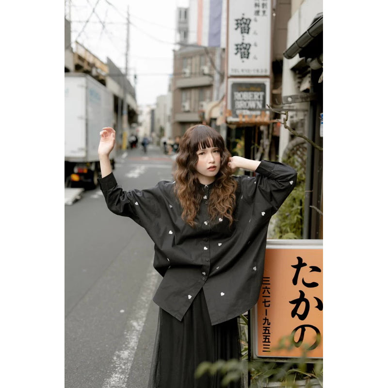 Oversized Boxy Heart Shirt In Black - Yestoday