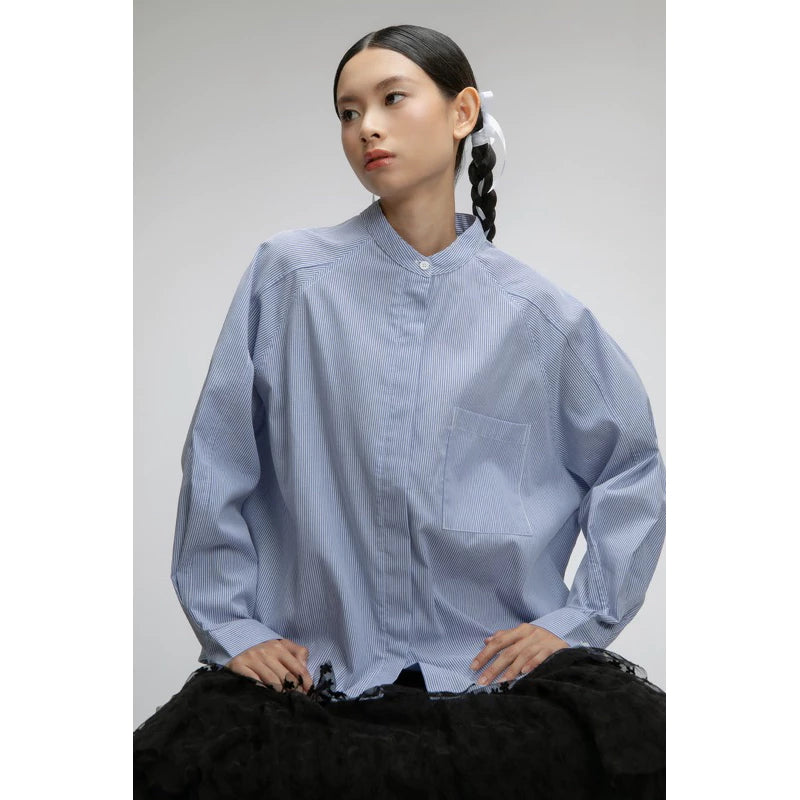 Oversized Raglan Pocket Shirt in Stripe Blue - Yestoday