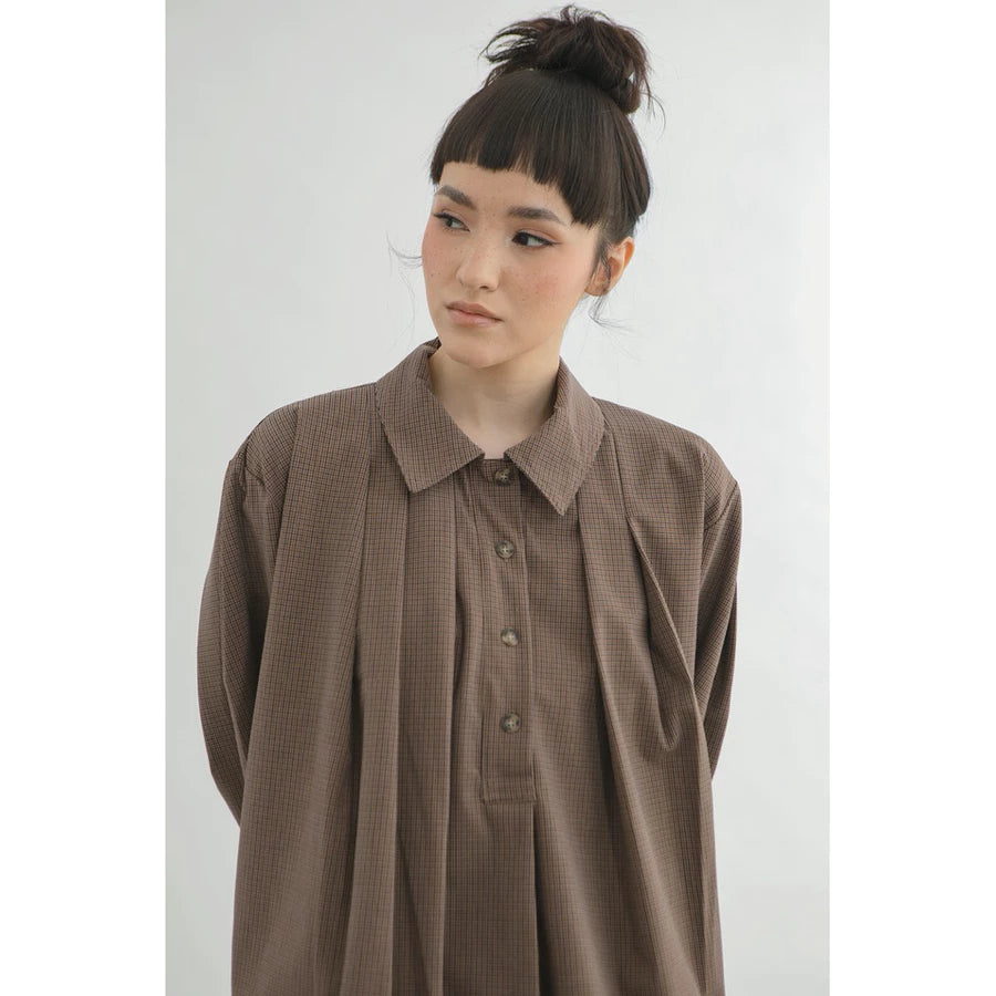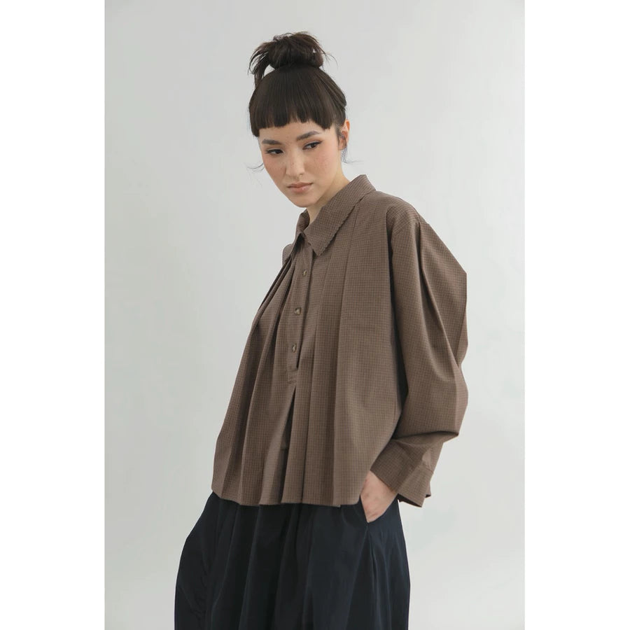 Pleated Top in Brown - Yestoday