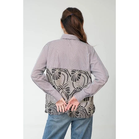 Tampil chic dan beda dengan blouse kombinasi motif stripe modern & lace.