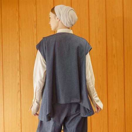 Ragini Vest is a flowy silhouette vest crafted for versatile styling. This clean and timeless vest pairs effortlessly with matching pants for a coordinated set look or mixes seamlessly with other wardrobe. Unique semi-hidden front pockets and charming appliqué details add subtle character, making it perfect for both casual outings and formal occasions.
