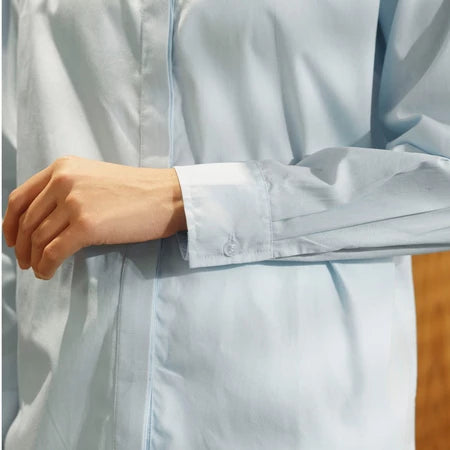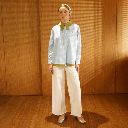 Raniza Top is a stylish women’s shirt designed with a classic front button opening and uniquely tailored cuffs. Crafted from soft and comfortable fabric, it offers all-day ease. A signature Jenna and Kaia metal plate on the left chest adds an elegant detail. Versatile and timeless, Raniza Top is perfect for both casual outings and semi-formal occasions.