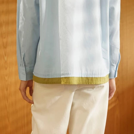 - Kombinasi warna kontras pada kerah, manset, dan bukaan bawah untuk tampilan yang bold namun tetap elegan