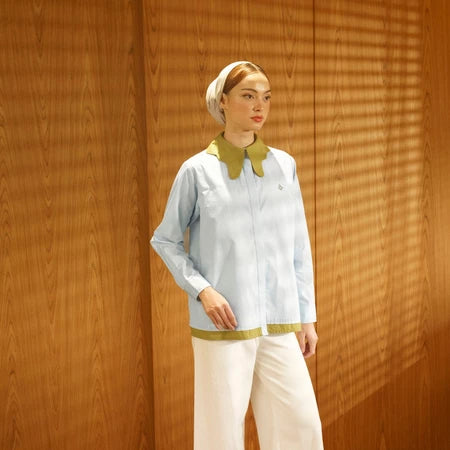 - Detail kerah unik yang memberi sentuhan karakter pada tampilan
