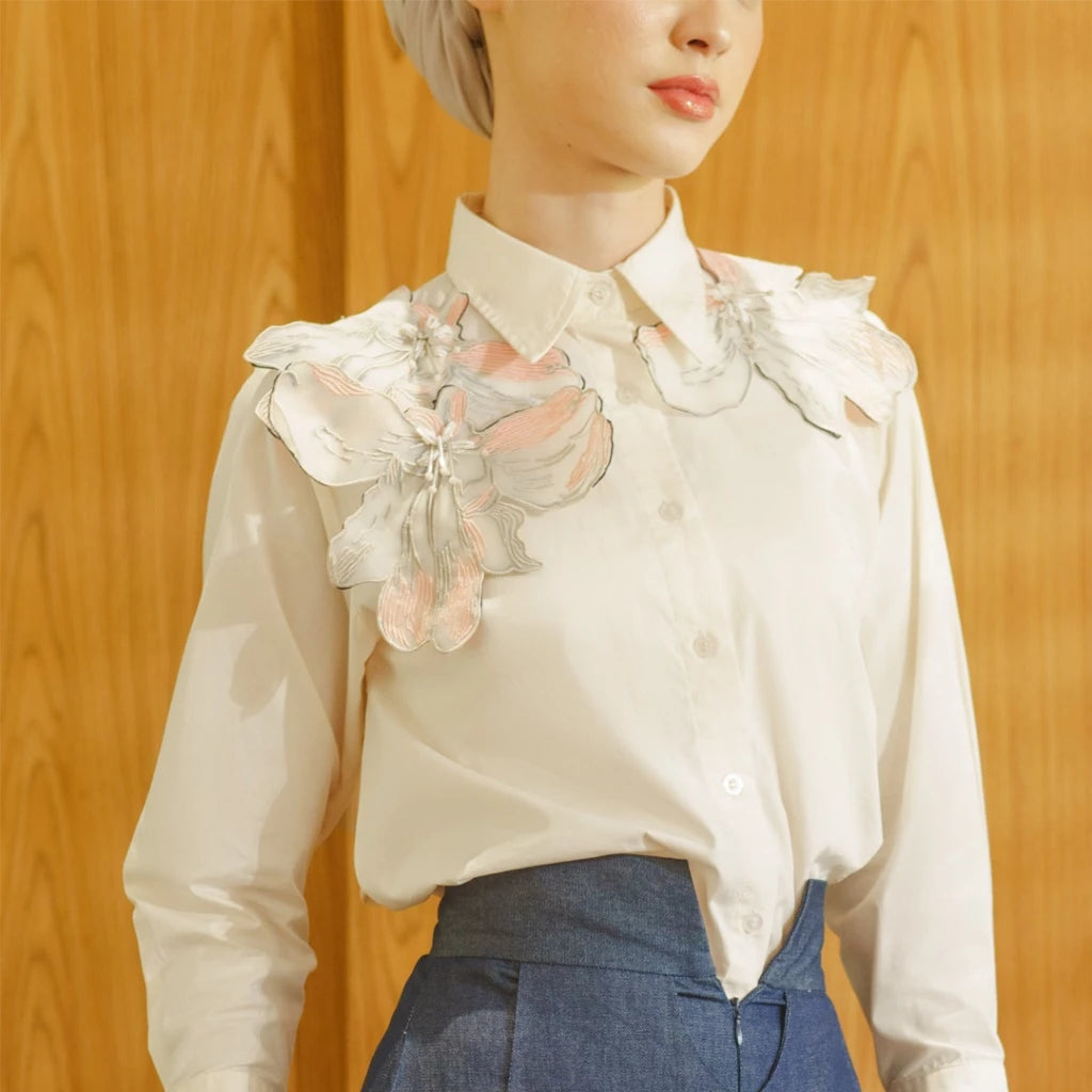 - 3D appliqué dan beading detail yang menonjolkan sentuhan artistik dan mewah
