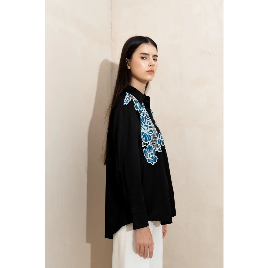 Versatile cotton top combines comfort and style, making it perfect for both formal and casual occasions. The soft cotton fabric ensures a breathable and comfortable fit, while the delicate embroidery on the front adds an elegant touch. A timeless wardrobe staple that effortlessly blends sophistication and casual ease.