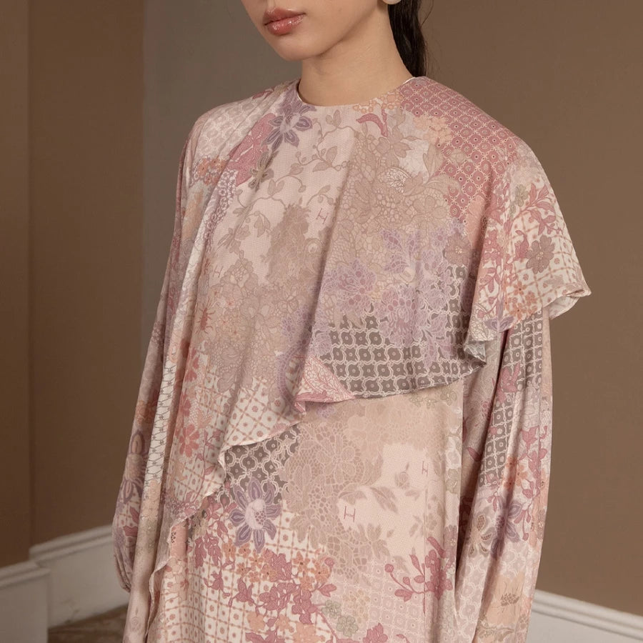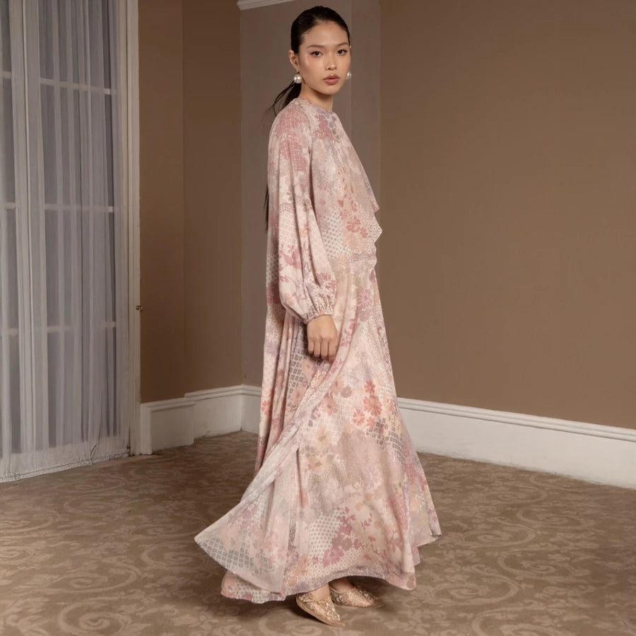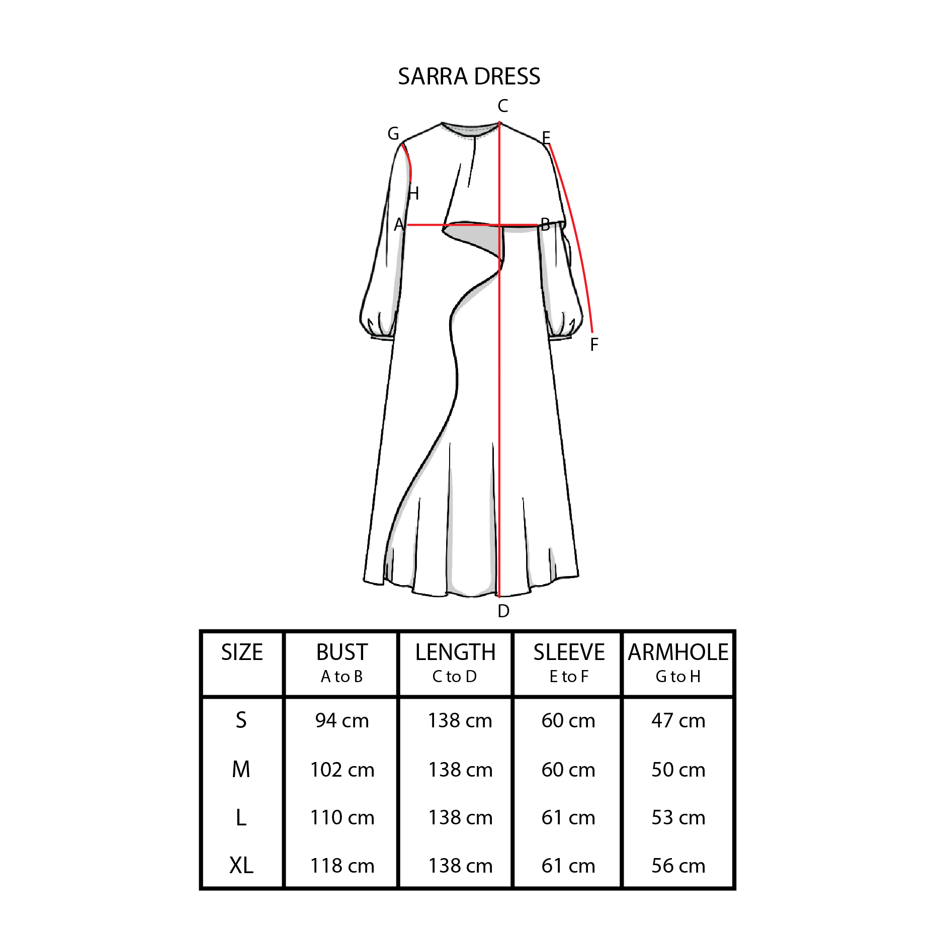 Detail : Silhouette A line berlayar, detail lengan balon, kerah bulat