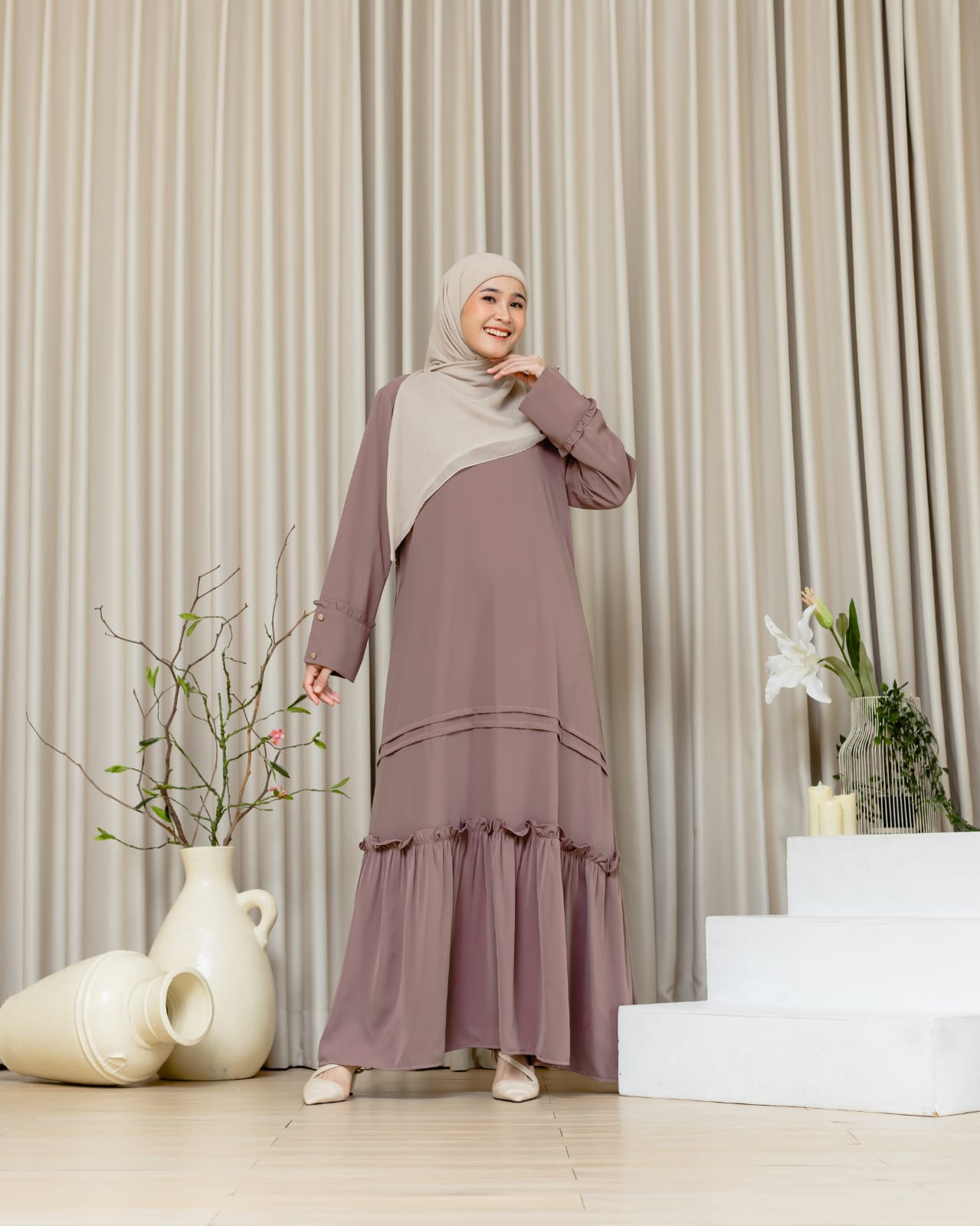 Shanum Dress Late dengan resleting belakang premium yang nyaman, dingin, bisa look mewah namun tetep ringan.