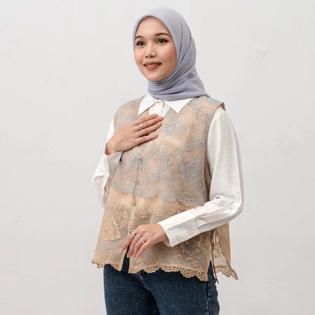 Outer ini dirancang khusus untuk memberikan sentuhan elegan dan anggun pada penampilan Anda. Terbuat dari bahan brokat berkualitas tinggi, outer ini memiliki desain yang menawan dengan detail yang halus dan rapih. Dengan potongan yang longgar dan flowy, outer ini cocok dipadukan dengan berbagai busana, memberikan kesan formal dan mewah tanpa mengurangi kenyamanan. Dengan warna yang elegan, outer brokat ini pasti akan menjadi pilihan sempurna untuk penampilan yang memukau.