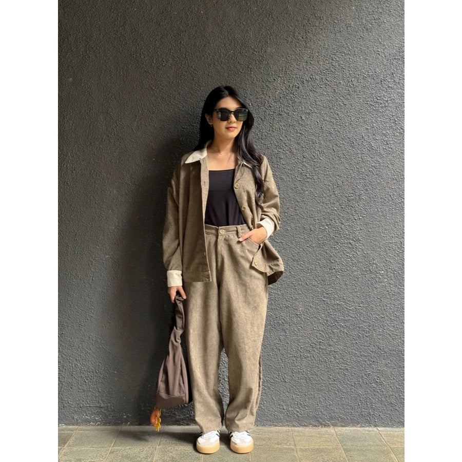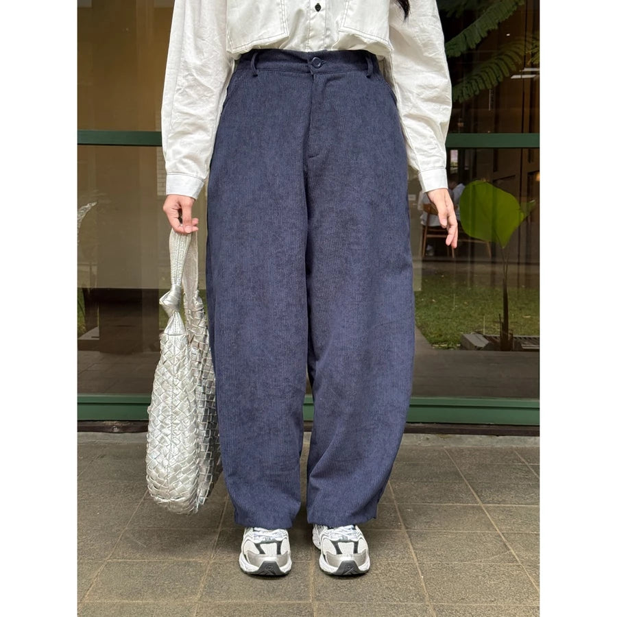 Celana barrel bikin tampilan makin effortless! Terbuat dari bahan baby corduroy yang lembut, adem, dan nyaman dipakai seharian. Potongan barrel memberi kesan trendy namun tetap santai, cocok untuk daily wear maupun hangout.