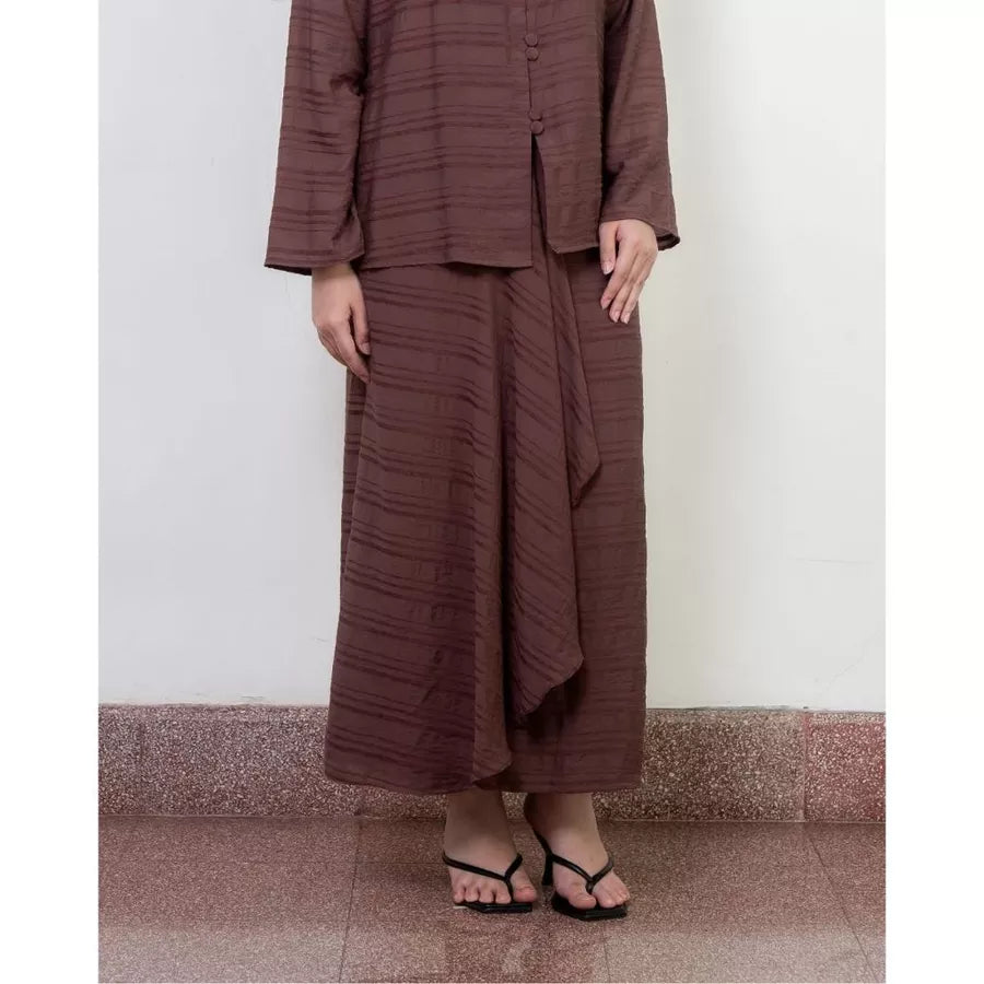 Skirt berbahan tencel blend yang lembut dan sejuk di kulit. Dilengkapi dengan furing, resleting, dan detail ikat instan di bagian depan.