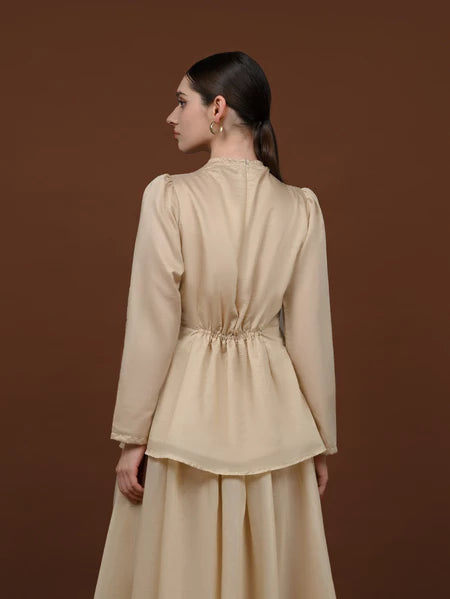 Atasan berbahan lyocell yang lembut, didesain dengan detail pleats, fitted waist dan puffy shoulder. Perfect blouse for your daily wardrobe update. Mix it with jeans for casual look or a silk skirt for a more formal look.