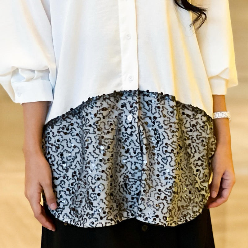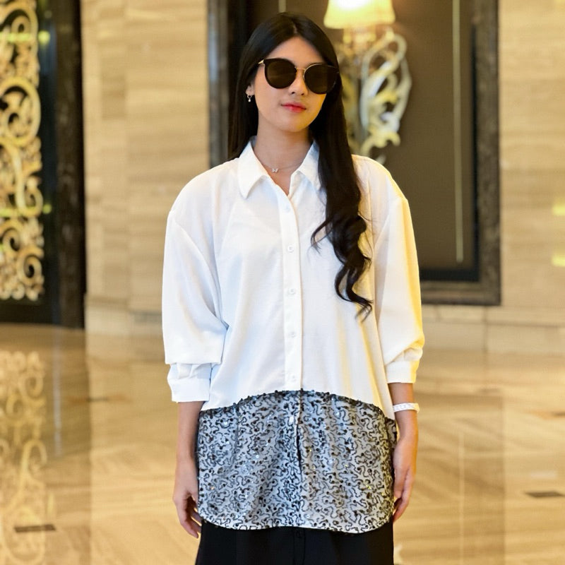 Oversized shirt cantik dengan variasi renda yang membuat kesan style sorai terlihat makin elegant! Bahan yang nyaman, tidak panas, siap menemani hari-hari Sorai!