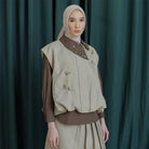 - Hiasan beading di bahu kiri dan saku sebagai aksen elegan nan mempercantik vest