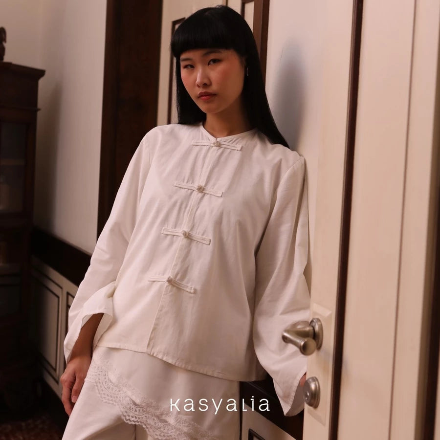 Wyn Linen Blouse is crafted from a breathable linen fabric with a soft, natural texture. Designed with a relaxed boxy silhouette and traditional knot button detailing, it brings a subtle sense of structure to an otherwise effortless piece. The wide sleeves and clean neckline create a balanced, understated look that feels both timeless and modern. Easy to wear on its own or layered, Wyn is a versatile staple for calm, everyday dressing.