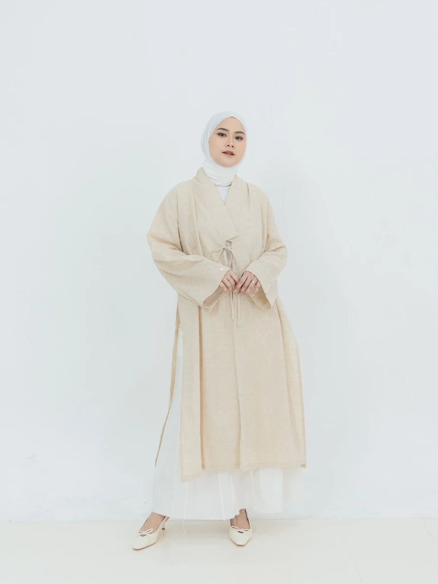 Yuki Outer dengan desain longgar dan lengan lebar terbuat dari bahan linen & cotton yang adem dan nyaman, menjadikannya pilihan sempurna untuk berbagai acara. Dari acara santai hingga formal, outer ini memberikan kesan chic dan elegan tanpa mengorbankan kenyamanan. Simple, stylish, dan versatile, Yuki Outer cocok dipadukan dengan berbagai gaya, baik untuk penampilan sehari-hari atau acara khusus, memberikan sentuhan modern yang effortless.